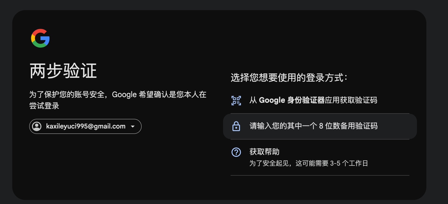 1,输入账户密码后点击下一步,显示让输入2-Step Verification验证码,将2fa字符串(账户组成的第四部分)放入浏览器打开2fa.show 这个地址,出现码,复制。如下图: